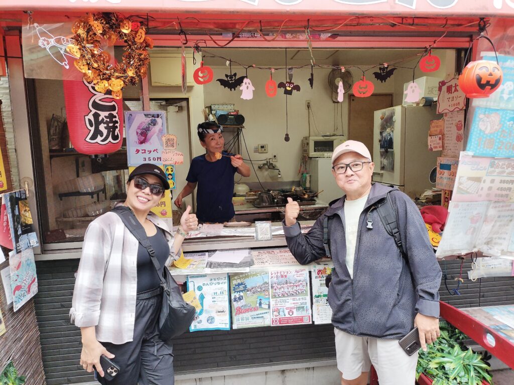 We return while viewing the Tokyo Skytree. You’ll see the daily lives of Tokyo residents, unlike the areas flooded with foreign tourists like Shibuya or Shinjuku. At Kameido Tenjin, you can also enjoy traditional Japanese sweets.