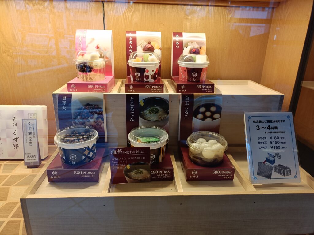 A long-established Japanese confectionery shop renowned for its kuzumochi, this kuzumochi is made by removing gluten and steaming lacto-fermented wheat starch. It features a subtle aroma, a hint of tartness, and a supple texture.